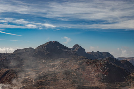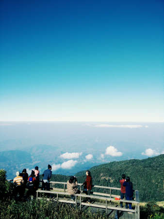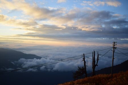 Skyline with mist and mountain at Doi Pha Hom Pok, the second highest mountain in Thailand, Chiang Mai, Thailand.