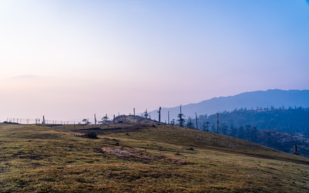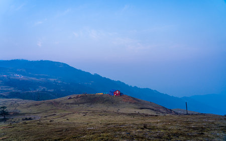 Scenic beauty of layers of mountains, Okhrey, sikkim, India. Okhrey village of one of the remotest places in Sikkim where peaceful, tranquil Himalayan mountain range is enjoyed by tourists from India.