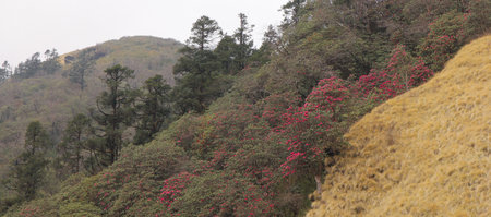 Blooming rhododendrons on the way to Muldai View Point, Nepal.