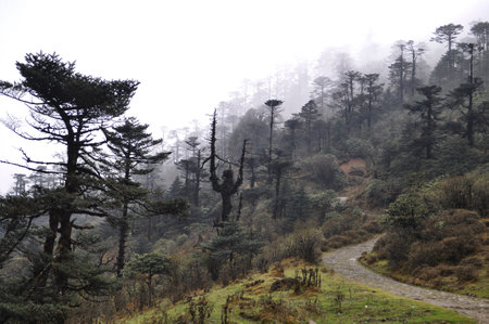 beautiful pine tree forest in himalyan mountain , a paradise for trekers
