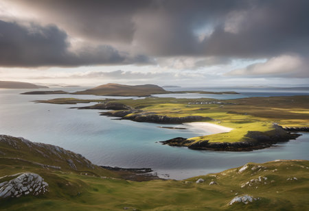 AI Generated. A beautiful landscape with a beach and a hillside