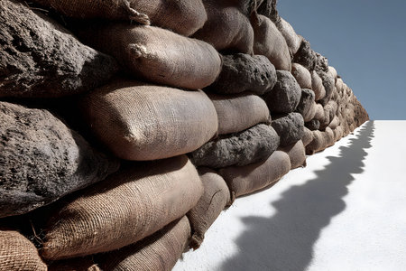 Aesthetic Sandbag Barricade On A Neutral Background In Standard Size.