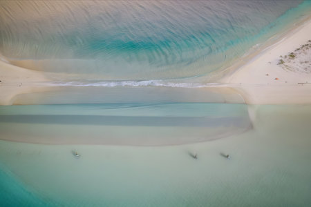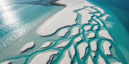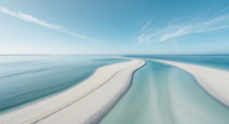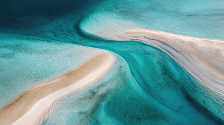 Ethereal Sandbar Patterns Aerial view of tidal formations creating abstract flowing lines in pristine white sand against turquoise water without