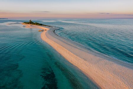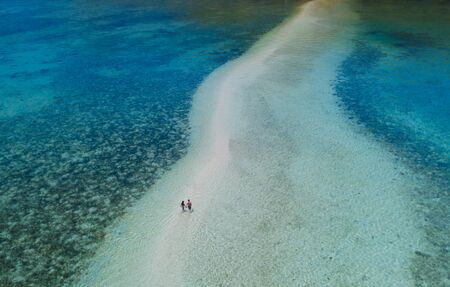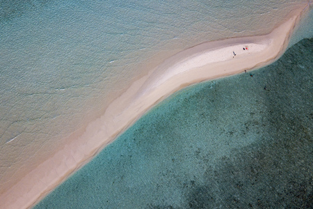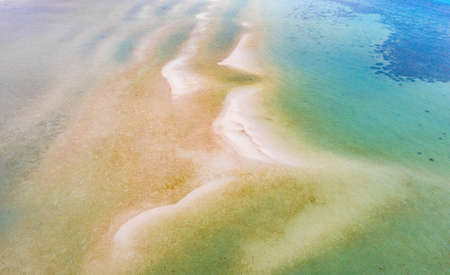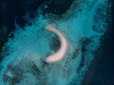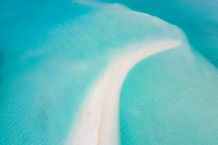White sand bank and turquoise ocean from above. Amazing tropical aerial landscape, beautiful nature