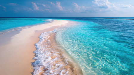 Tropical background with serene blue waters and white sandy beaches: Idyllic and refreshing, perfect for a beachside retreat