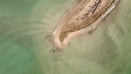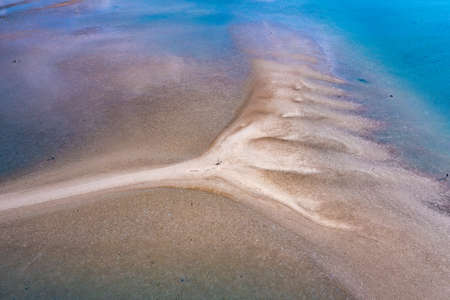 Top view aerial photography from drone of stunning beautiful sea landscape beach with turquoise water. Beautiful sand beach sandbank. Relax nature, amazing shallow lagoon bay