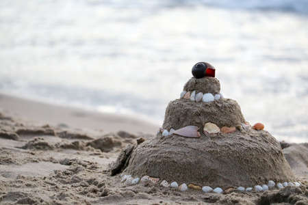 Sand castle on the beach. Concept of travel, vacation and holiday.