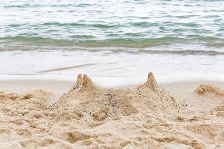 Sandcastle on the beach. Selective focus. Holiday concept.