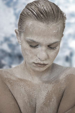 Portrait of young woman with snow make-up