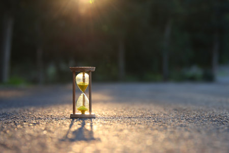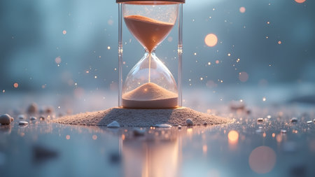 A captivating image of an hourglass with sand trickling down, symbolizing the passage of time and capturing a sense of fleeting beauty.