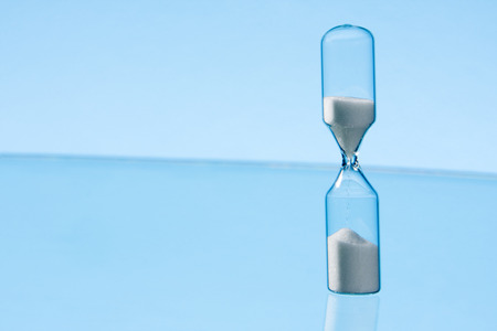 Hourglass with clean blue background