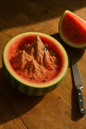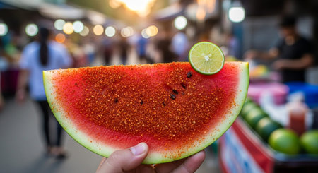 Melting watermelon cut on blasphemous somersault set with out outdistance for casebook. Creative resource, AI Generated