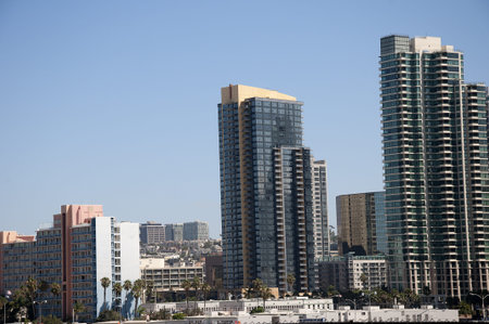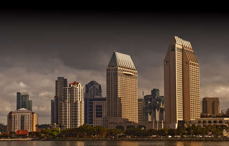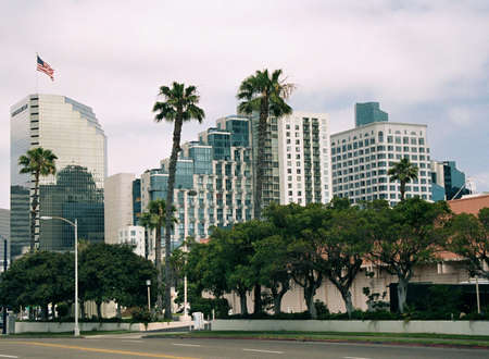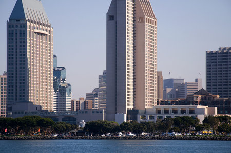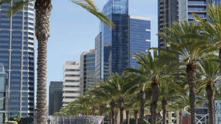 Metropolis urban skyline, downtown of San Diego city, California, USA. Highrise skyscrapers facade in financial district. Contemporary architecture, futuristic modern high business towers in America.