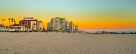 Sunset over the beach from the pier in Huntington Beach, Orange County, California