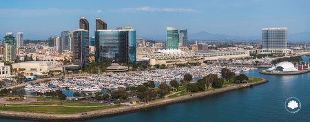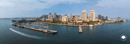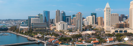Panoramic of the San Diego California skyline photographed from Centennial Park on Coronado Island