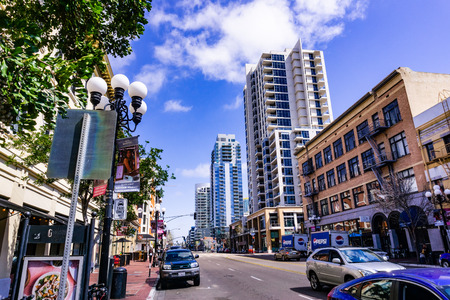 March 19, 2019 San Diego / CA / USA - Urban landscape in the Gaslamp Quarter in downtown San Diego
