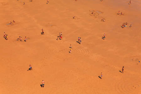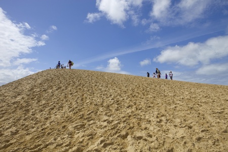 People visiting the Famous dune of Pyla, the highest sand dune in Europe, in Pyla Sur Mer, France.
