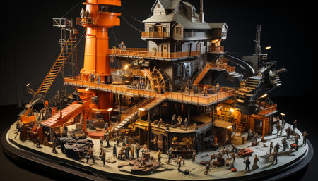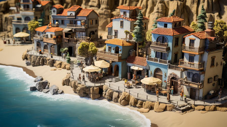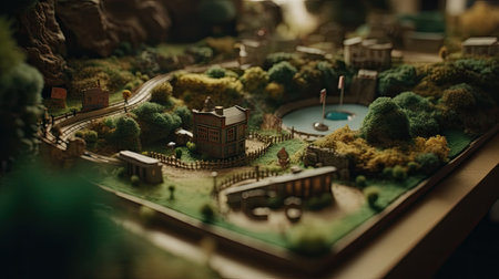 aerial view of a detailed miniature village landscape, created with generative ai