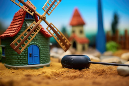 miniature village with windmill and river flowing, created with generative ai