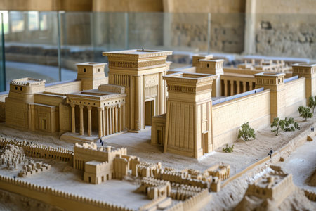 Scale model depicting ancient Jerusalem and its grand temple, showing the historical layout and architecture to an observing audience