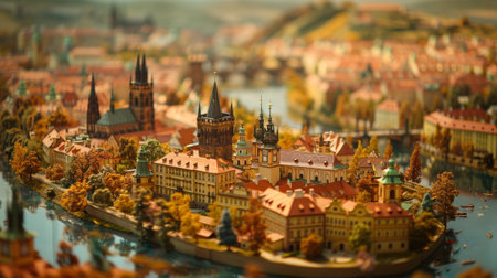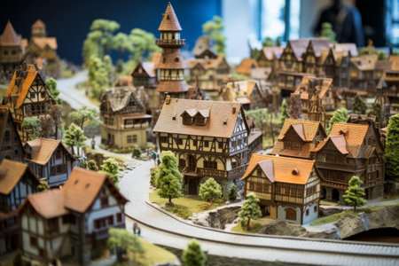 Exquisite handcrafted miniature european village model with intricate architectural details, cobblestone paths, and detailed landscaping, perfect for tabletop gaming and hobbyist display