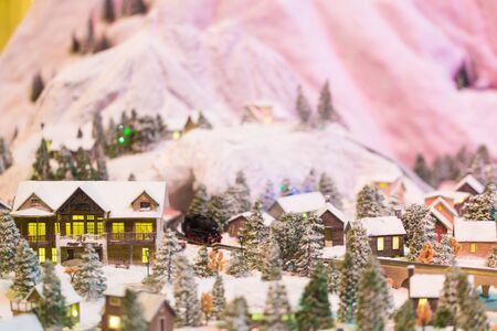 Miniature of winter scene with Christmas tree, Christmas concept.