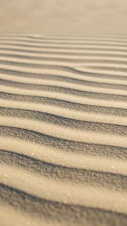 Sand ripples illuminated by warm light, creating a natural and elegant pattern ideal for design backgrounds and calm concepts.