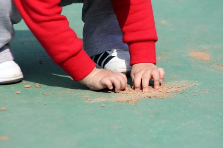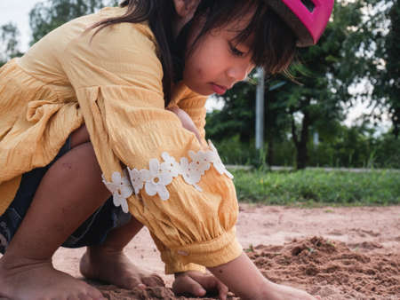 kid playing with sand.kid growth or development concept