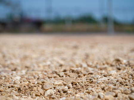 Natural sandy ground. Focused small stone ground in safety children playground useful for background.