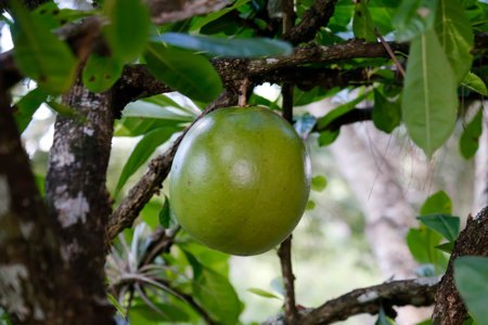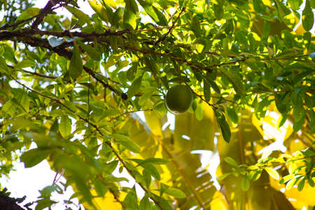 Berenuk crescentia cujete has large round green fruits that grow in tropical forests