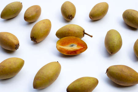 Fresh sapodilla fruit on white background