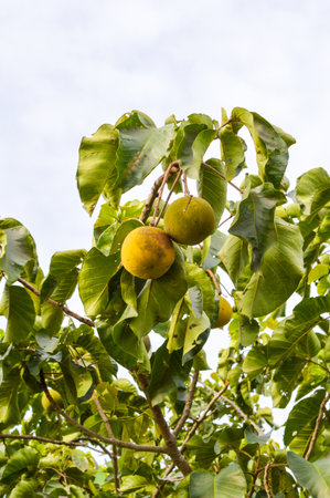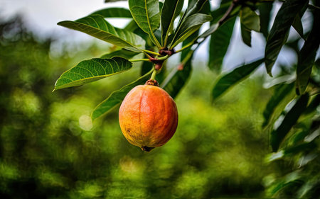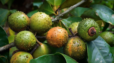 Ripe tropical fruit growing on tree