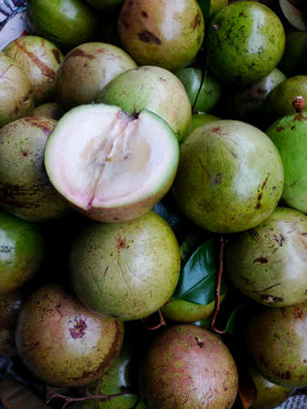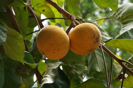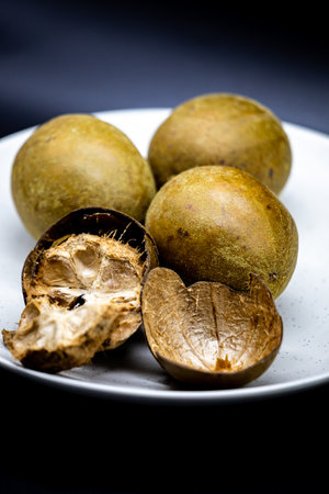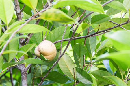Sapodilla or sapote fruits of tropical evergreen tree (lat.- Manilkara zapota)