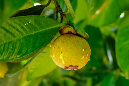 Green mangosteen with leaf, Thailand