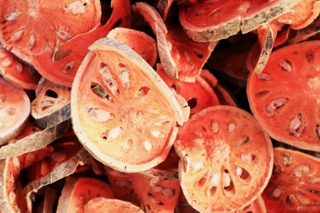 Close up slices of dried bael fruit