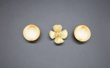 Baccaurea motleyana slice isolate on black background, close-up