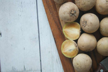 Fresh santol fruit on Wood Floor