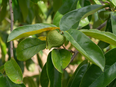 Green mangosteen with leaf, Thailand