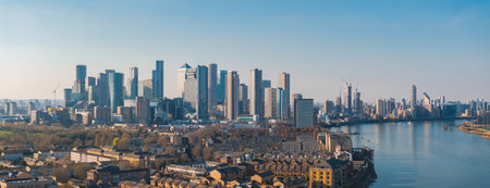 Aerial View of Canary Wharf Skyline and River Thames in London