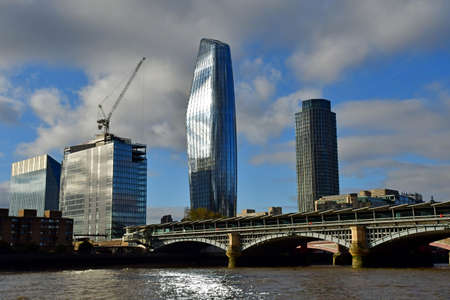 London, United Kingdom - October 18 2018: The skyline af the City area of London, with SKyscrapers and cranes dwarfing St Pauls, as viewed from Blackfriars Bridge