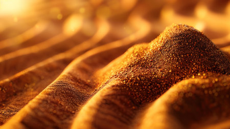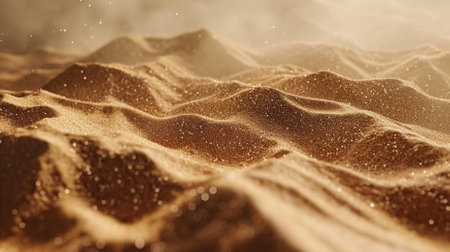 A close-up shot of desert sand, showing its intricate texture and subtle patterns. Light catches the grains, creating a warm and inviting atmosphere