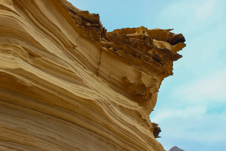 Texture of relief rock. Beautiful natural formation on the shores of the Mediterranean Sea. scenic natural wallpaper