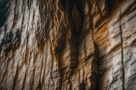 close capture of an eroded wall displaying multiple rock strata, created with generative ai