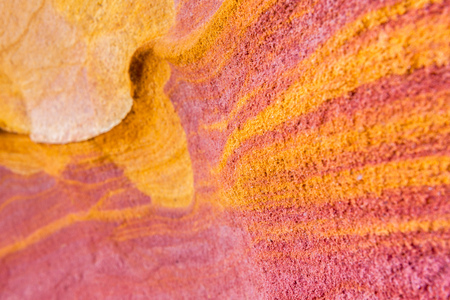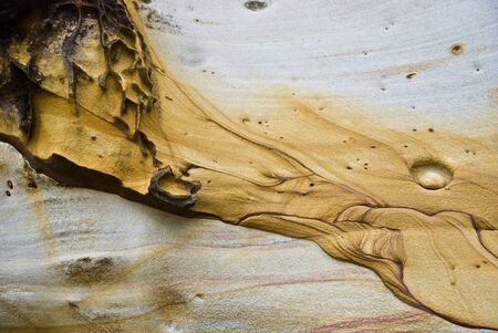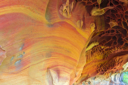 Colorful weathring detail of sandstone erosion. Was seen in New Zealand.