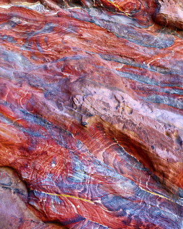 Red Blue Orange White Rock Circles Abstract Petra Jordan Built by Nabataens in 200 BC to 400 AD Canyon walls create many colorful abstracts close up