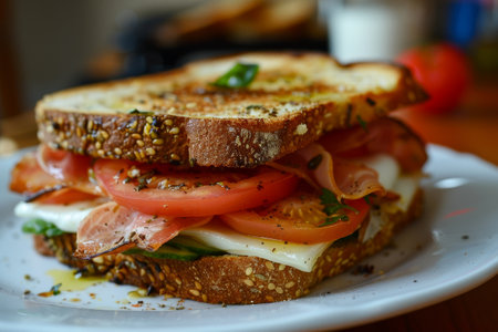 Sandwich. Appetizing multi-layered sandwich with variety of fillings. Generative AI
