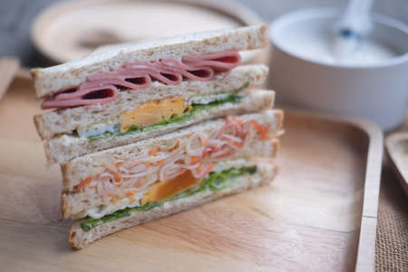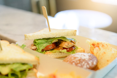 Mini Club Sandwich with chicken beacon ham, Egg Salad Cold Cuts Brioche Sandwiches for Catering, Seminar, Coffee Break, Breakfast, Lunch, Dinner, Buffet and meeting Group.
