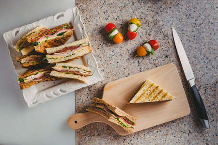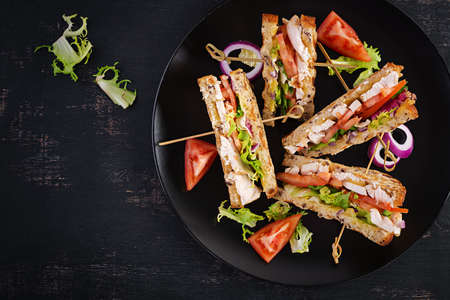 Mini Club Sandwich with chicken beacon ham, Egg Salad Cold Cuts Brioche Sandwiches for Catering, Seminar, Coffee Break, Breakfast, Lunch, Dinner, Buffet and meeting Group.