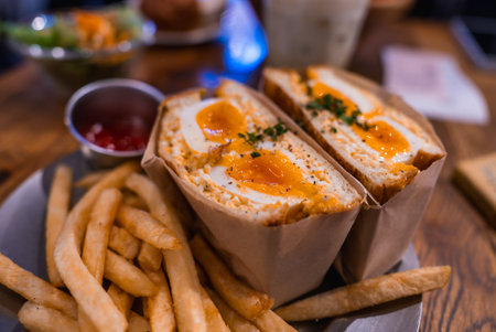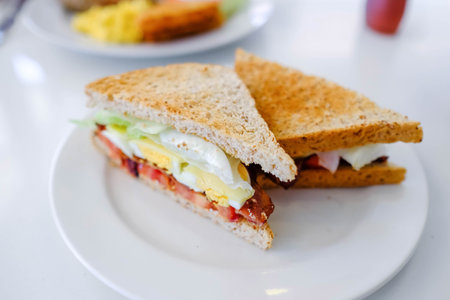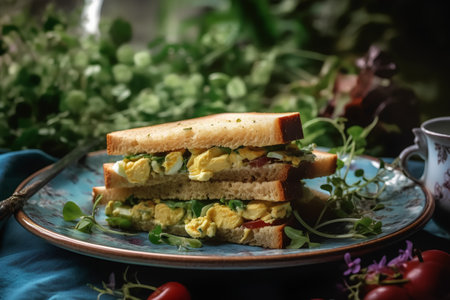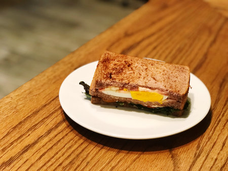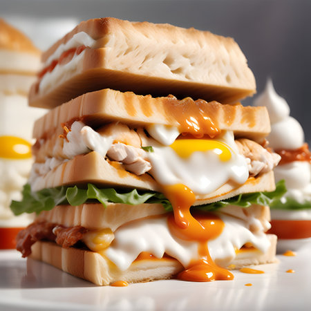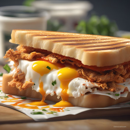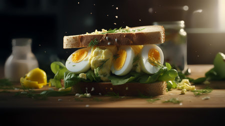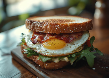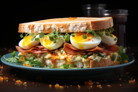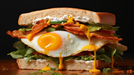 sandwich with fried egg ,becon for breakfast in morning. Generative AI