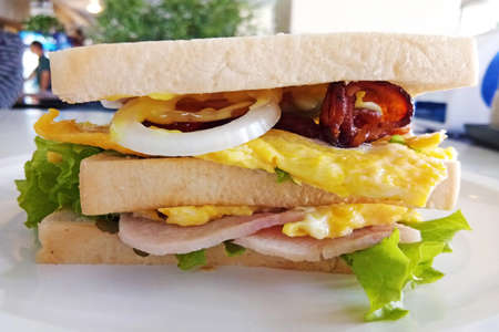 Club Sandwich - Bacon, Ham, Egg and Vegetables Breakfast Sandwich